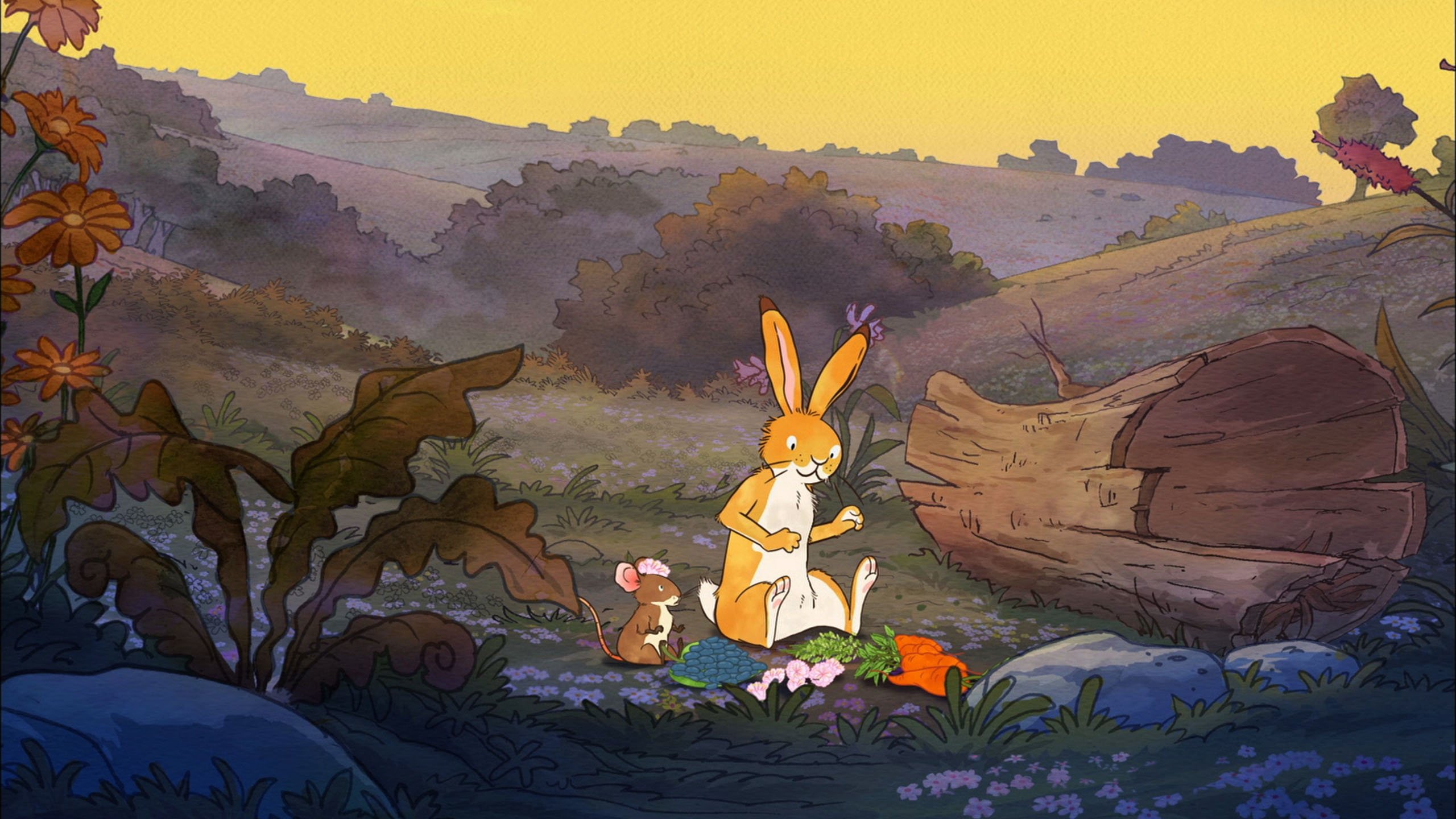 Während der kleine Hase fröhlich über die Wiese tollt und Kunststücke vorführt, ist der große Hase sehr beschäftigt. Er hat keine Zeit, dem kleinen Hasen Gesellschaft zu leisten oder die unzähligen Fragen des kleinen Hasen zu beantworten, denn er hat viel Arbeit. Der große Hase muss Essen für die beiden suchen und das Nest im Baumstamm muss mit frischen Blättern aufgefüllt werden. Natürlich möchte der kleine Hase seinem Vater helfen.