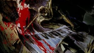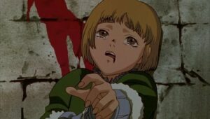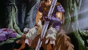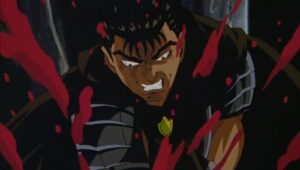 Die Serie beginnt mit dem Krieger Guts, der nach dem Grafen der Region sucht. Nach einigen Kämpfen mit dessen Untergebenen, steht er dem Grafen schließlich gegenüber. Dieser verwandelt sich jedoch während des Kampfes in ein riesiges, schlangenartiges Monster. Nach dem gewonnenen Kampf flieht Guts in den Wald, wo er von Stimmen geplagt wird. Es beginnt eine Rückblende: