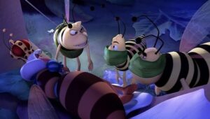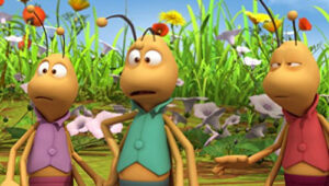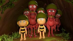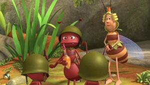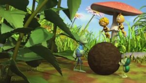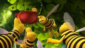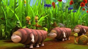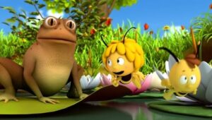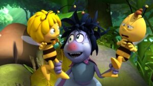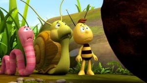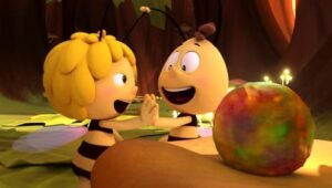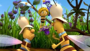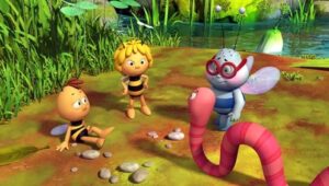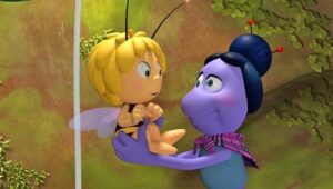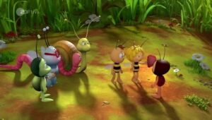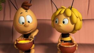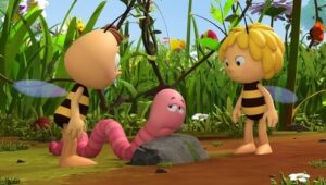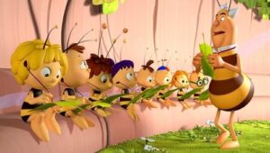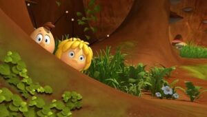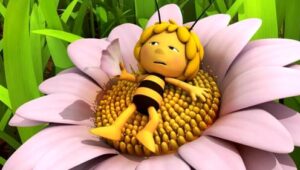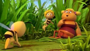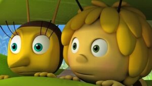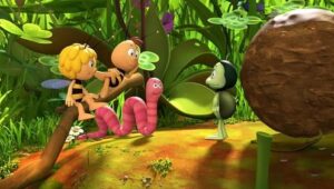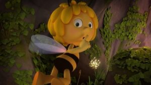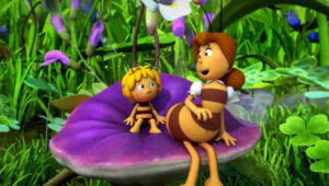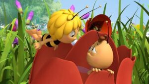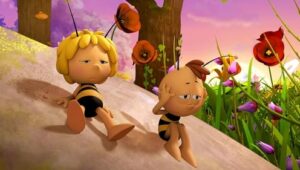 Im Bienenstock auf der Klatschmohnwiese wird eine Biene geboren, die gleich nachdem sie aus ihrer Zelle geschlüpft ist, besonders auffällt: die Biene Maja. Sie lacht, tanzt sofort aus der Reihe und bringt die Königin mit ihren Fragen durcheinander. Frau Kassandra, ihre Lehrerin, wundert sich sehr über diese kleine, freche, neugierige Biene. Für sie ist es wichtig, dass alle Bienen in der Gemeinschaft ihre Arbeit leisten. Arbeit allerdings ist auch nicht die Sache einer anderen Biene mit dem Namen Willi. Beim ersten Flugunterricht freunden sich Maja und Willi an. Als Maja das erste Mal über die Klatschmohnwiese fliegt könnte sie vor lauter Freude überschäumen. Die vielen bunten Blumen, die glitzernden Tautropfen, der blaue Himmel und ein großer Regenbogen lassen Majas Herz höher schlagen. Sie trifft lustige Insekten wie den kleinen Mistkäfer Ben, die griesgrämige Schnecke Rufus und Flip, den Grashüpfer …
