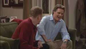 Hinterm Sofa an der Front ist eine Comedy-Serie um das Ehepaar Dave und Vicky. Zu ihrer Jugendzeit, so ihre Meinung, war alles noch gaaaanz einfach. Jetzt, wo sie allerdings Kinder im Teenager-Alter haben, merken sie erst, wie gut sie selbst es in dem kritischen Alter hatten. Sie haben drei Kinder: Die 16-jährige Hillary, die sich unbedingt verabreden und ausgehen will, den 15 Jahre alten Larry, der bei seinen Mitschülern nicht besonders beliebt ist und das ‚Nesthäkchen‘ Mike, der mit seinen 13 Jahren gerade mitten in den ersten Hormonwallungen der Pubertät steckt.