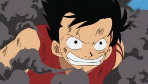 Reichtum, Macht und Ruhm. Der Mann, der sich dies alles erkämpft hatte, war Gold Roger, der König der Piraten. Als er hingerichtet wurde, waren seine letzten Worte: „Ihr wollt meinen Schatz? Den könnt ihr haben! Sucht ihn doch! Irgendwo habe ich den größten Schatz der Welt versteckt.“ Dieser Schatz ist das One Piece und er liegt irgendwo auf der Grandline. Damit brach das große Piratenzeitalter an Monkey D. Ruffy ist 17 Jahre alt und hat ein großes Ziel: Er will König der Piraten werden und den Schatz One Piece finden! Ruffy hat besondere Kräfte durch die Teufelsfrucht „GumGum“ erhalten und ist ein Gummimensch. Er hat seinen Traum von dem Piraten Shanks, der ihm einst das Leben rettete…
