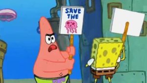 Unter dem Meeresspiegel in der kleinen Stadt Bikini Bottom haben sich viele Seelebewesen häuslich eingerichtet. Die liebenswürdigste aller Kreaturen ist SpongeBob Schwammkopf. Er lebt in einer Ananas zusammen mit seinem Haustier, der Schnecke Gary, und arbeitet in dem Fast-Food-Restaurant Krosse Krabbe. In seiner Nachbarschaft wohnen der griesgrämige Thaddäus Tentakel und der begeisterungsfähige, aber dumme Seestern Patrick Star. In jeder Folge stürzen sich SpongeBob und seine Freunde in neue, haarsträubende Aktivitäten.